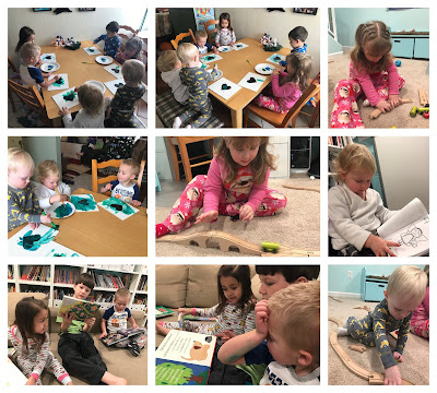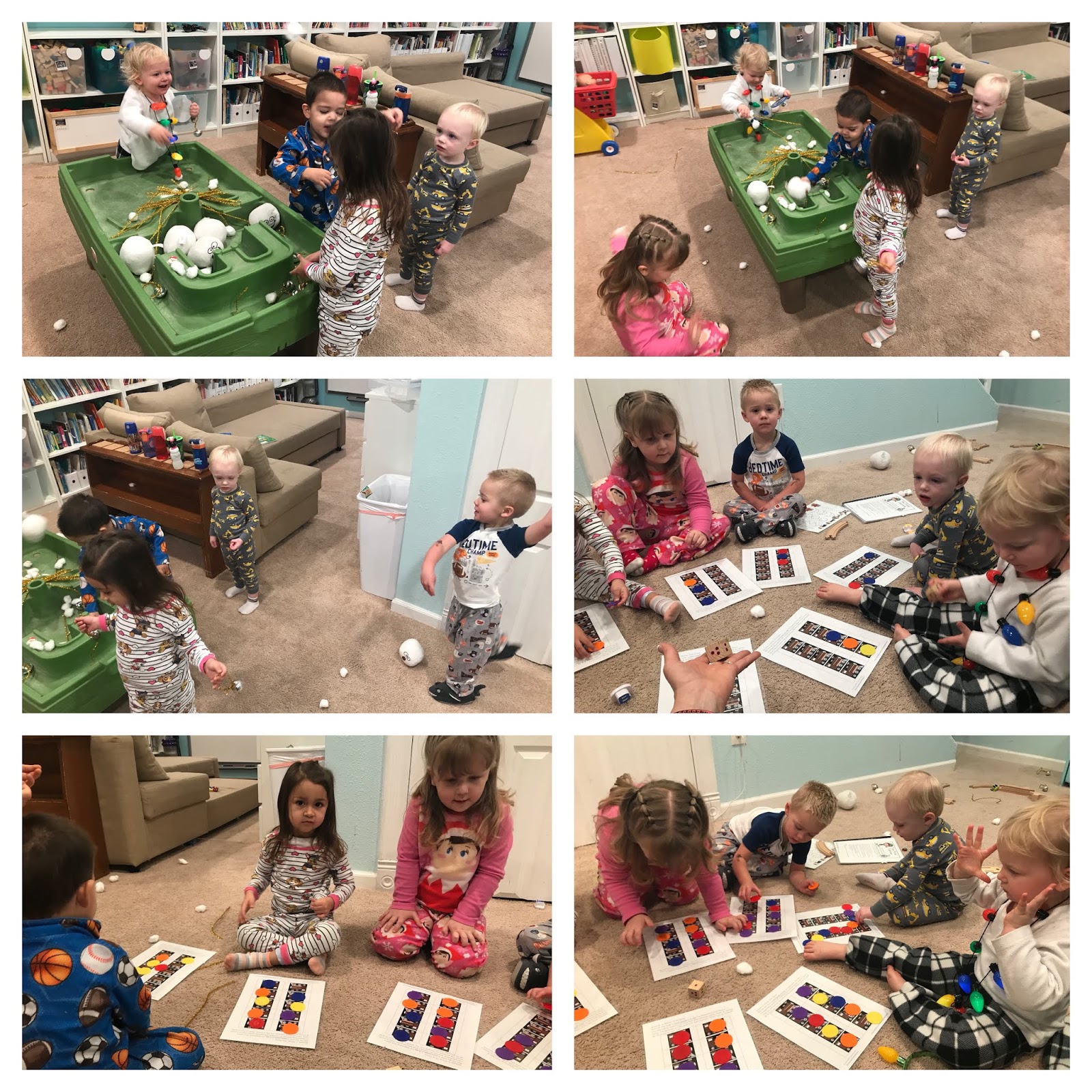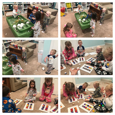 After snack we played with gingerbread play dough. We haven't pulled out the play dough since summer camps and I was surprised that everyone was engaged for a half hour or longer until pickup.