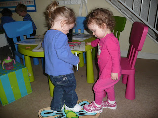 The girls pulled out the balance board and wanted to play with it together. There was so much giggling as they worked it out.